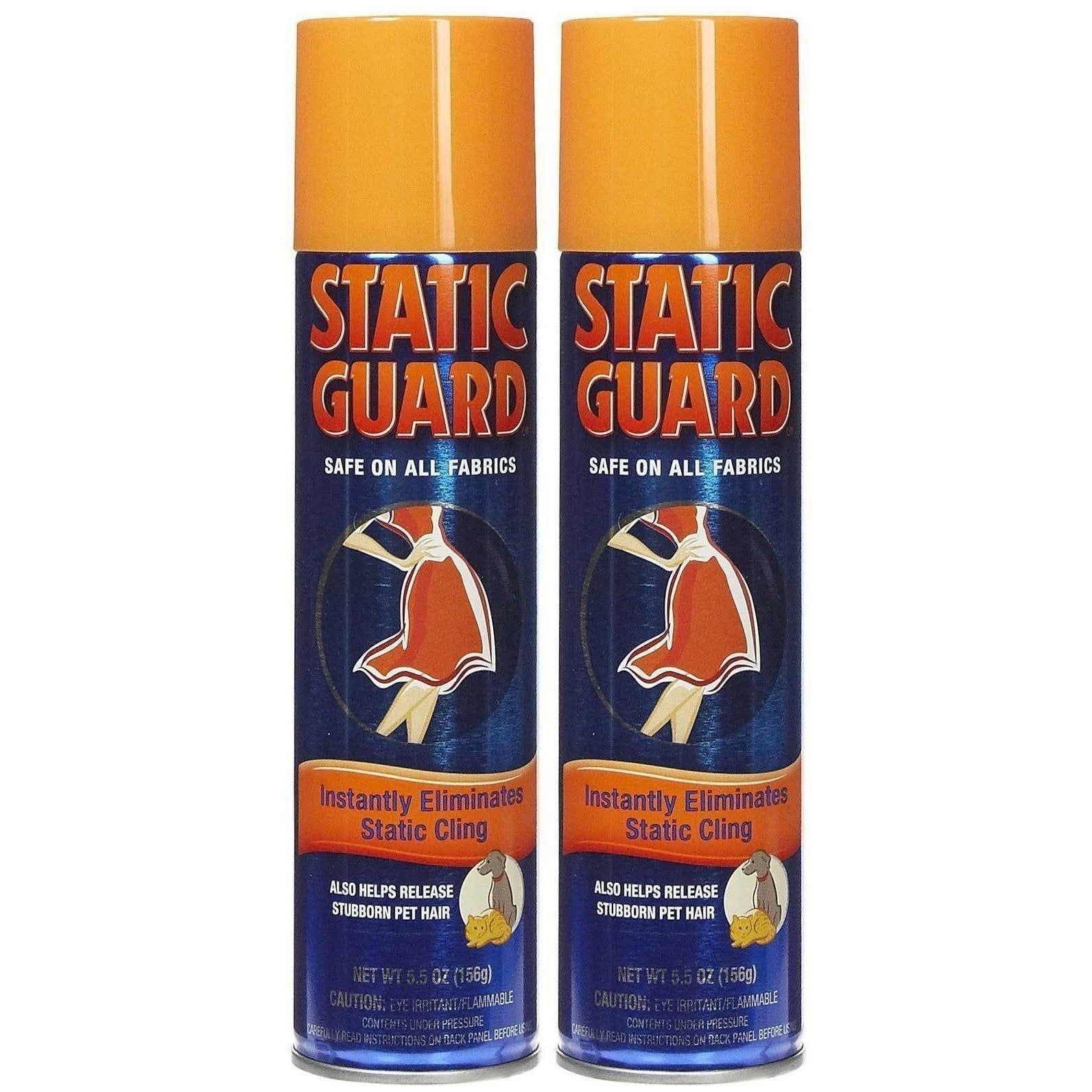 Static Guard spray is safe for all colorfast fabrics, even silk. It instantly prevents build-up and is specially formulated for use on clothes you are wearing. Use it to remove pet hair and lint and spray it on clothing, drapes and more. The 5.5 oz anti-static spray is purposefully made to be used when you're already dressed and ready to go. It can also protect computers and electronics.