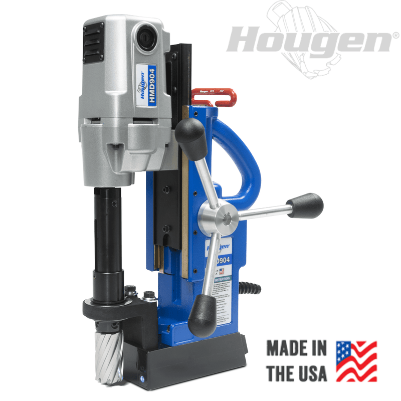 The HMD904 Magnetic Drill is a compact, high-performance drilling solution designed for precision holemaking in steel and other metals. Ideal for fabrication shops, construction crews, and industrial maintenance, it delivers powerful, accurate cuts with excellent portability. Its strong magnetic base ensures stability on vertical or overhead surfaces, while compatibility with premium Hougen cutters enhances efficiency and tool life.
