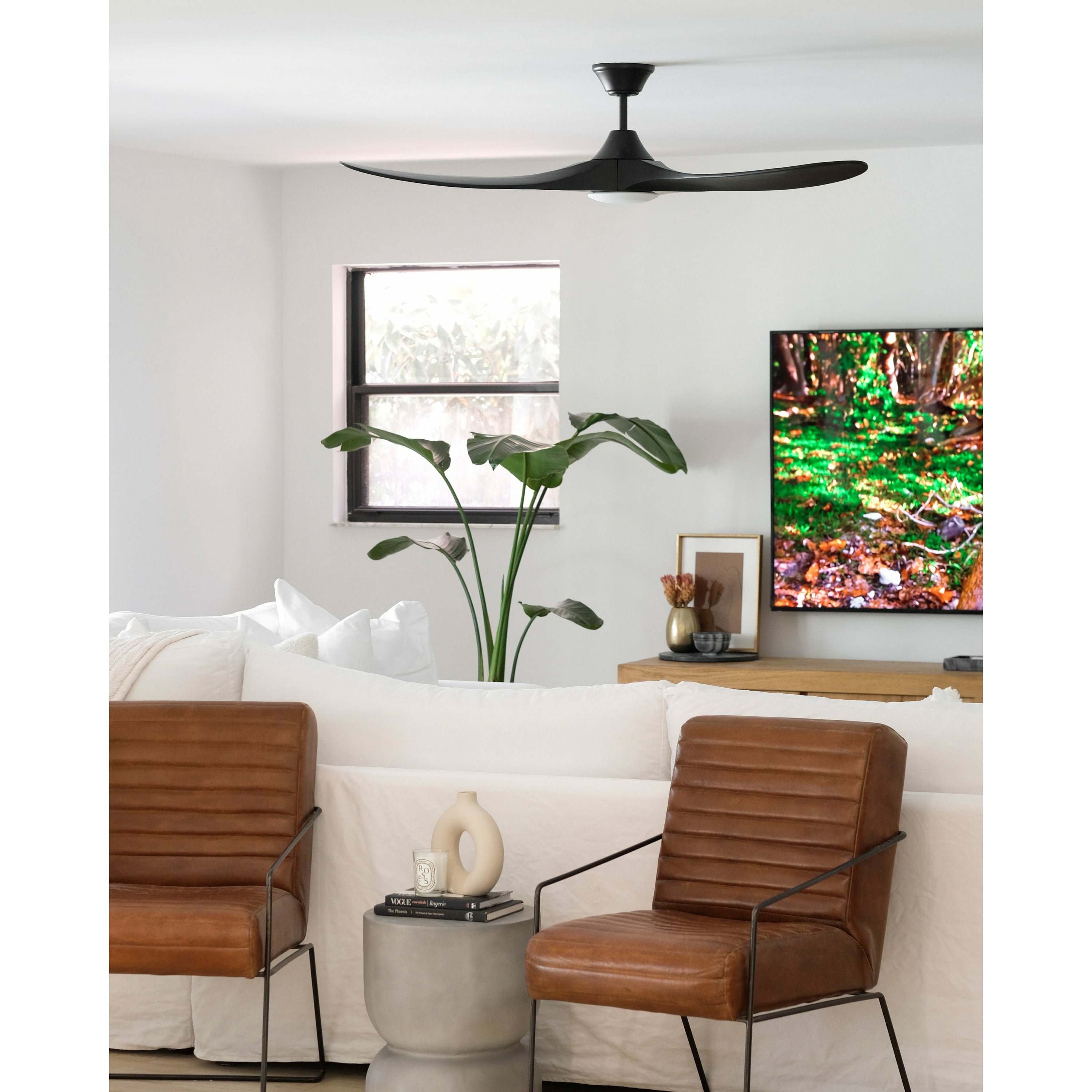 The popular Maverick ceiling fan by Monte Carlo is now available with an integrated LED light. This advanced LED technology is carefully designed and selected to consist of the highest quality LED chipsets for superior performance and reliability. With a sleek modern silhouette, a DC motor and super energy-efficiency, the Maverick LED ceiling fan from Monte Carlo features softly rounded blades and elegantly simple housing. Maverick LED is available in 52, 60 and 70 inch blade sweep and a 3-blade design that delivers a distinct profile and incredible airflow for living rooms, great rooms or outdoor covered areas. It includes a hand-held remote with six speeds and reverse. All versions feature beautiful hand-carved, balsa wood blades. ENERGY STAR qualified. Maverick fans are damp-rated.