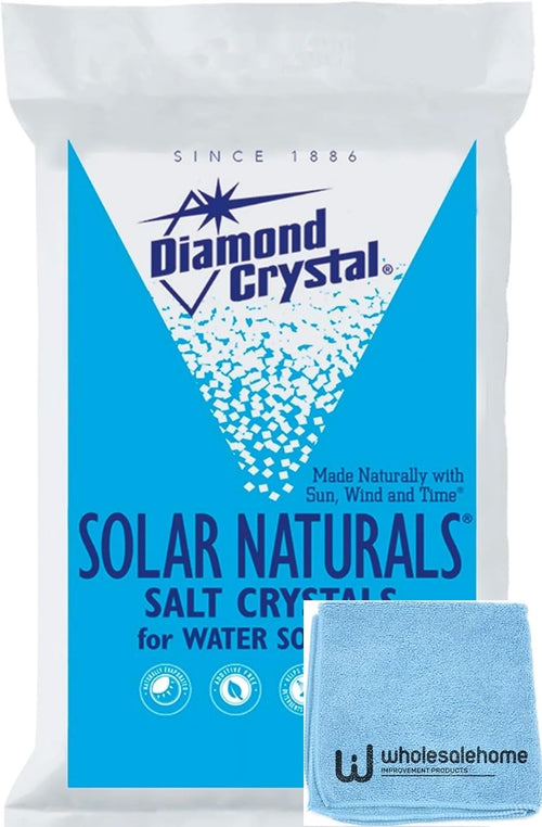 DIAMOND CRYSTAL SOLAR NATURALS WATER SOFTENER SALT 50Lbs. WITH WHOLESALEHOME CLOTH HIGH PURITY: Solar salt boasts a typical purity level of 99.6%, ensuring excellent quality. NATURAL CREATION: Crafted through the...
